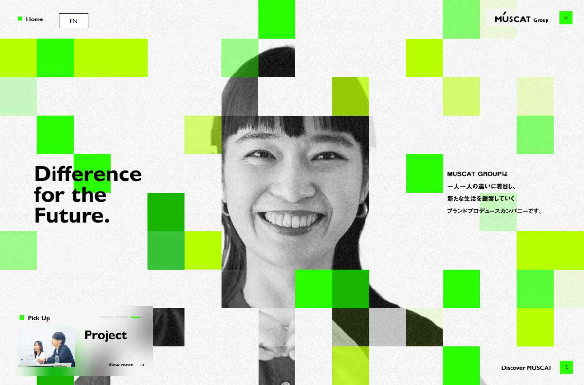 株式会社MUSCAT GROUP (マスカットグループ)のWebサイトとなります。私たちは「Difference for the Future.」を掲げ、ブランドプロデュース・M&A・テクノロジーを武器に、多様なブランドの成長を実現し、世の中に違いを生み出し続けます。